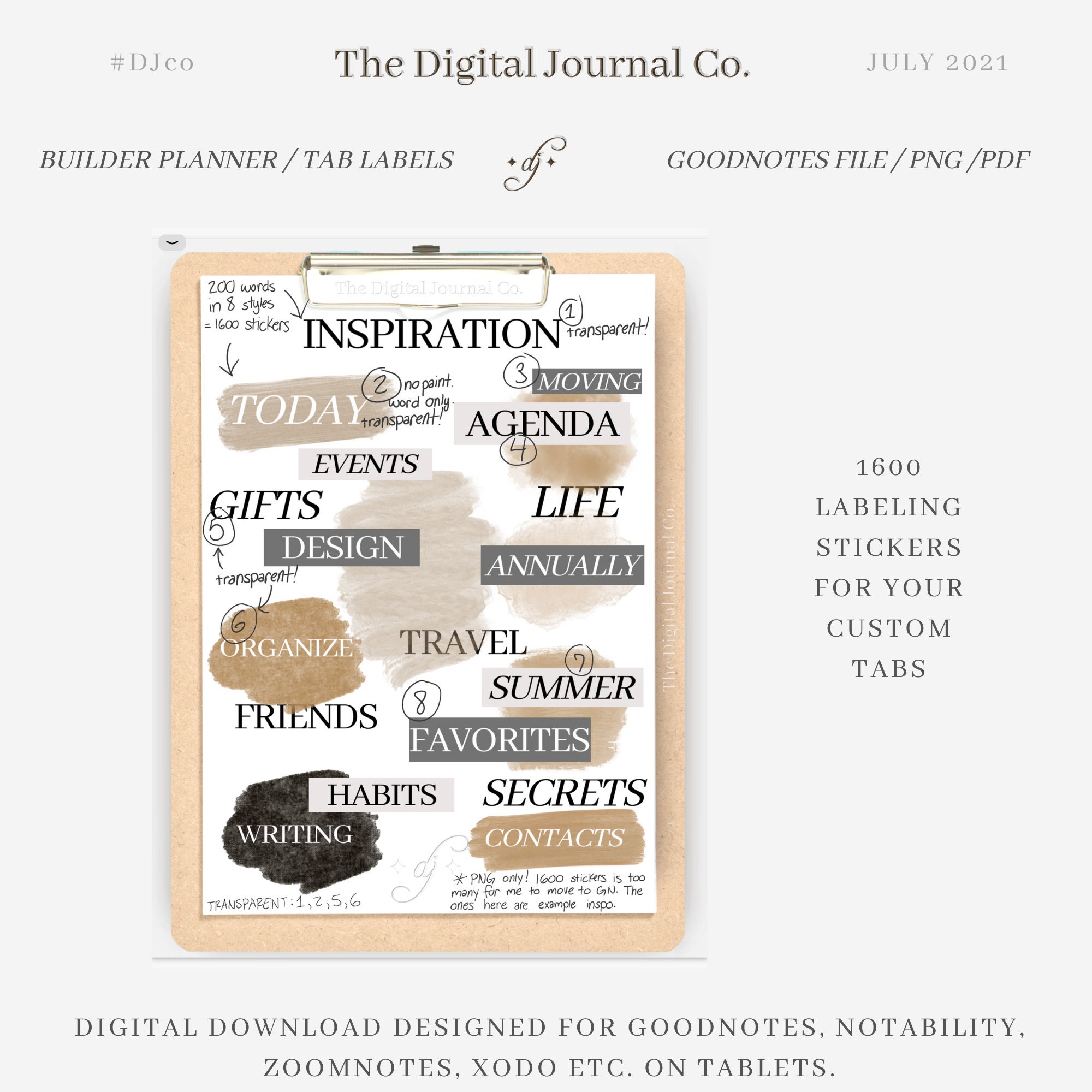 Builder Planner / Cocoa ~ DJco (digital planner, notebook, stickers, goodnotes, ipad, bullet journal, linked tabs)