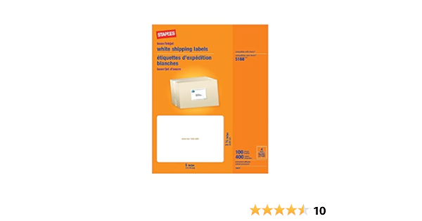Staples Laser/Inkjet Shipping Labels, 3 1/2" x 5", Bright White, 4 Labels/Sheet, 100 Sheets/Box (18074-CC)