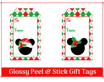Santa Mickey & Minnie Inspired Christmas Gift Tags | Glossy Peel and Stick Holiday Labels | Gift Tags